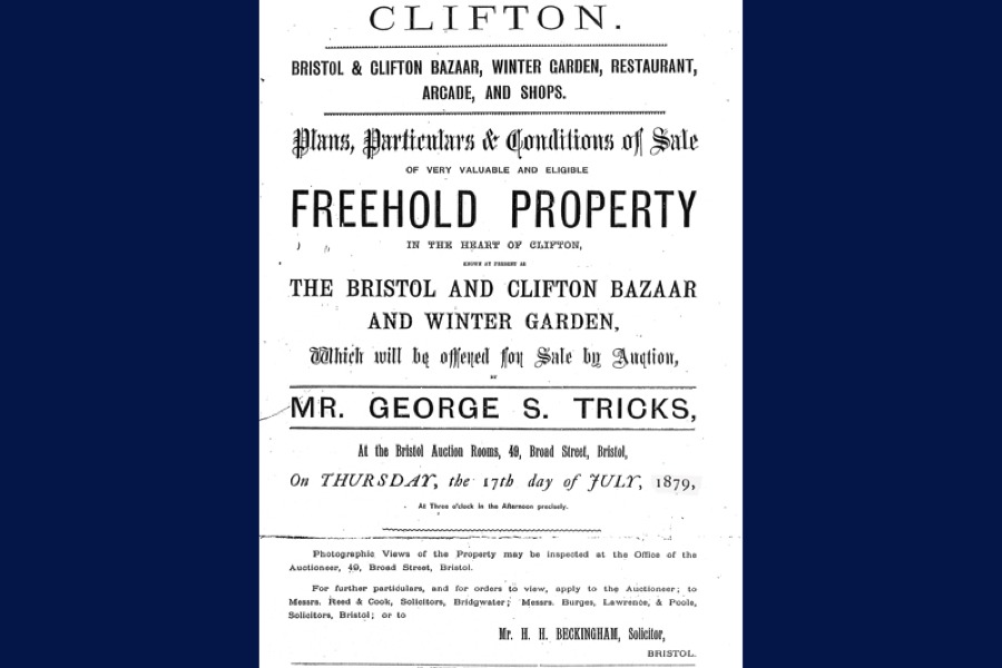 King's Clifton Bazaar and Winter Garden opened on April 7th, 1879. It was an instant flop - it became known as King's Folly. There were no takers and he went bankrupt. It was already for sale by July 1879.