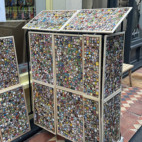 We sell fun little gifts: jewellery (rings, necklaces, earrings), pin badges, fridge